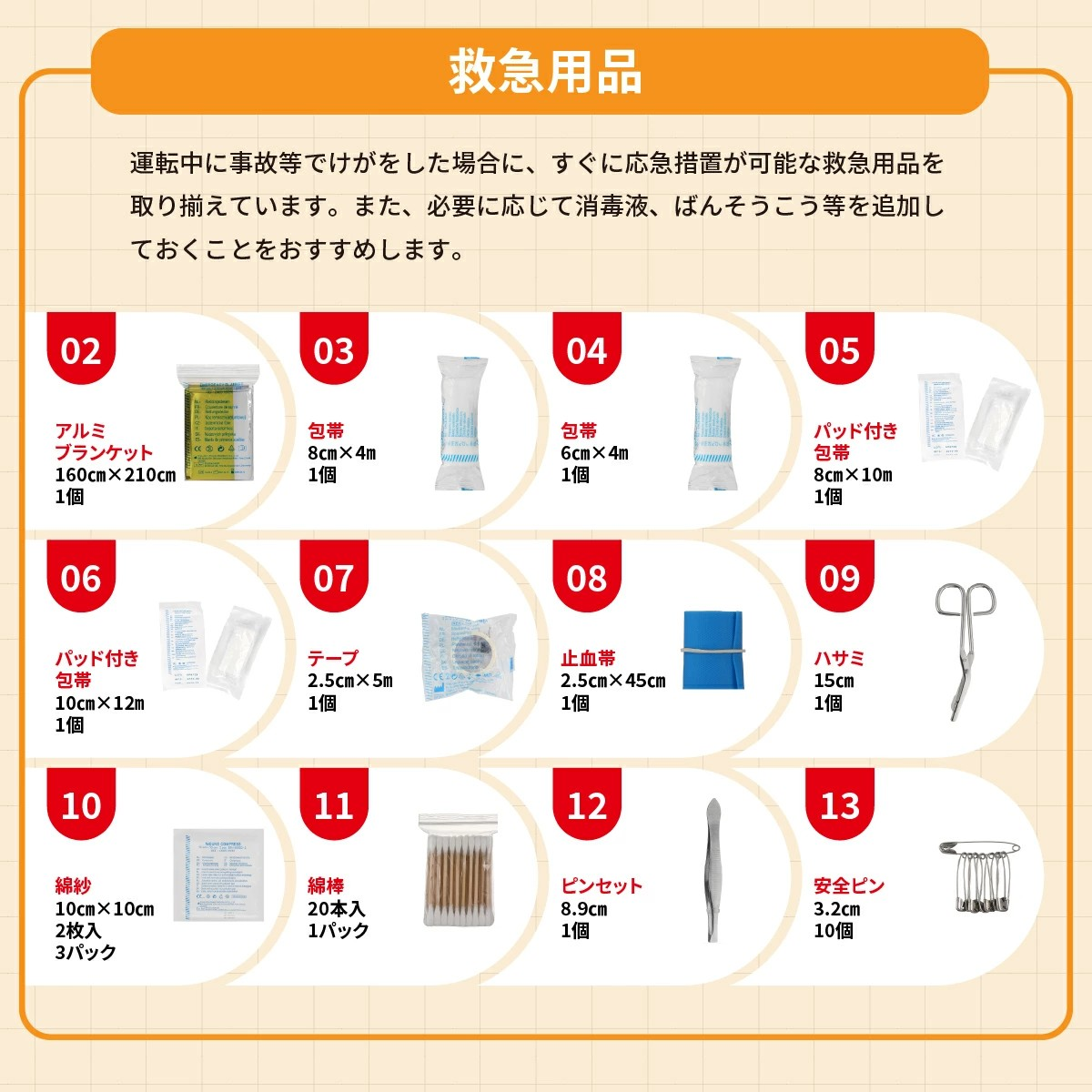 ・車のプロが考えた車載特化の非常用セットです。