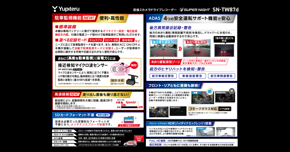 ・SDカードフォーマット不要。メンテナンスフリーで快適に!