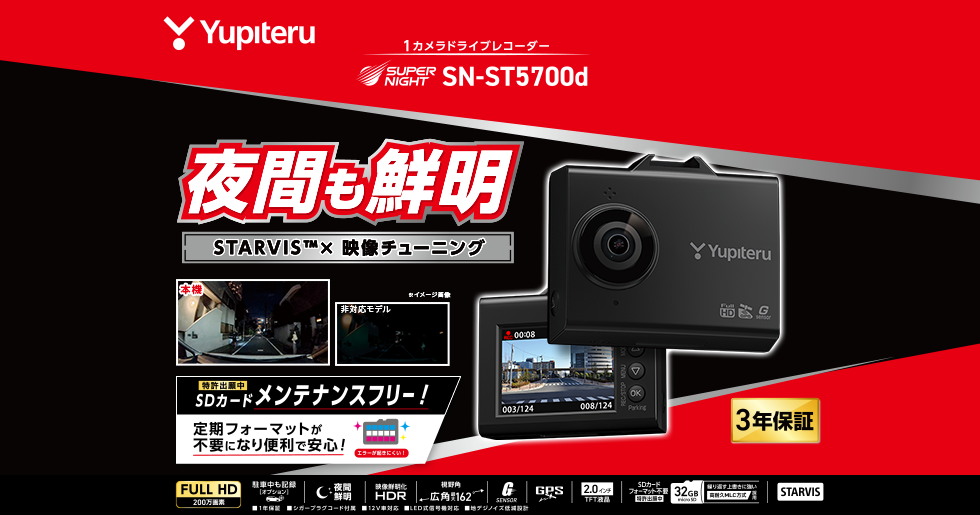 ・超高感度センサー搭載で夜間も鮮明に記録。