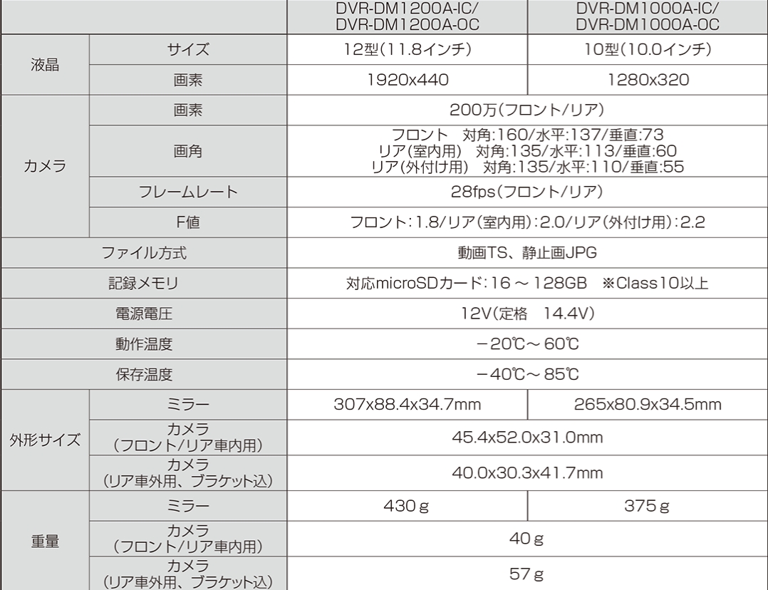 ※フロントカメラは「ドライブレコーダー搭載」モデルのみに付属